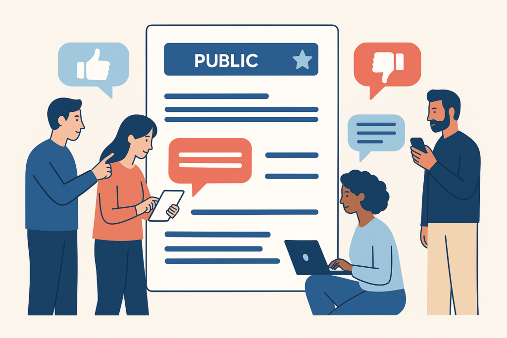 Konsultimi publik është procesi përmes të cilit qytetarët kanë mundësi të shprehin mendimin e tyre për projektligje, vendime apo politika që i prekin drejtpërdrejt. Institucionet kanë detyrimin ligjor të publikojnë nismat në faqet e tyre zyrtare dhe të lejojnë komentet për një periudhë të caktuar kohore. Çdo qytetar, organizatë apo grup interesi mund të marrë pjesë duke dërguar komente, sugjerime apo vërejtje. Ky proces ndihmon që vendimmarrja të jetë më transparente dhe politikat të reflektojnë nevojat reale të shoqërisë.